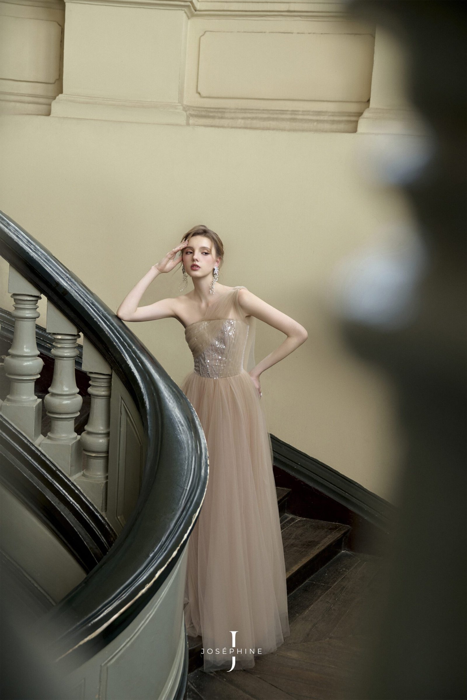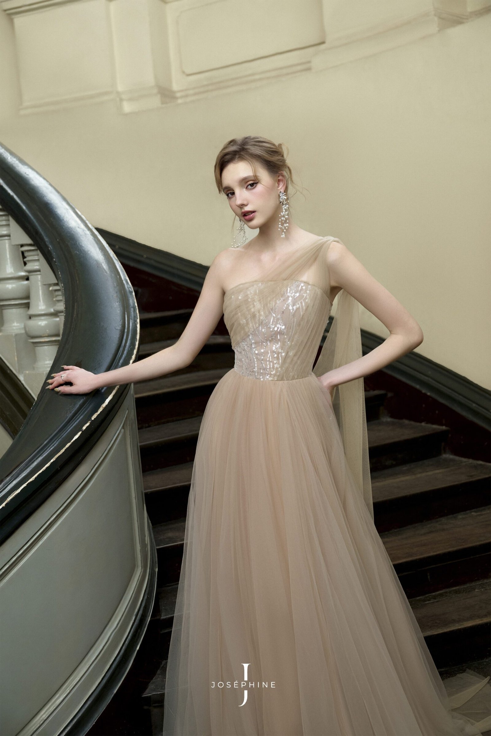 The Caroline Dress embodies the essence of natural beauty, drawing inspiration from European elegance. Its flowing silhouette highlights your figure, radiating a sense of grandeur. The dress is brown and crafted from high-quality mesh.