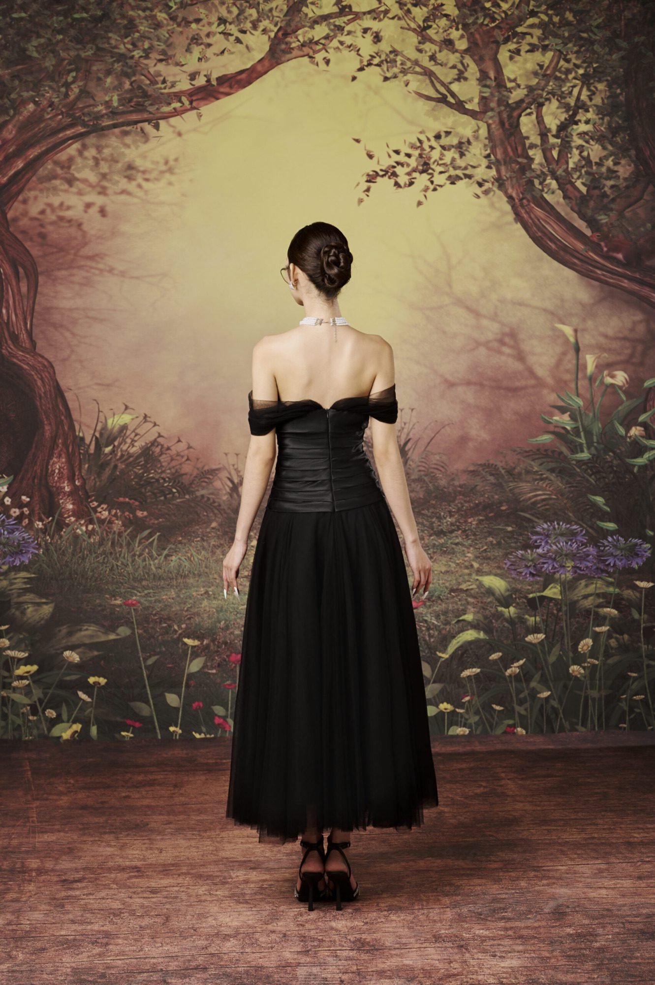 The Chrissy Dress from the La Forêt de Joséphine collection embodies elegance through its timeless black or white palette. Crafted from a blend of mesh and soft silk, the dress offers both comfort and style, which results from its high-quality materials. This makes it the perfect choice for evening events where you’ll stand out with captivating allure.