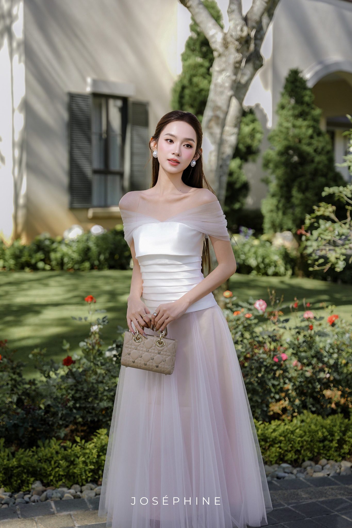 The Chrissy Dress is an experience of minimalist style with an upgrade in color, featuring a soft transition from white to pale pink. Crafted from silk, soft mesh, and silk lining, this dress is beautifully complemented by a sweetheart neckline structure, making it a versatile choice for any occasion.