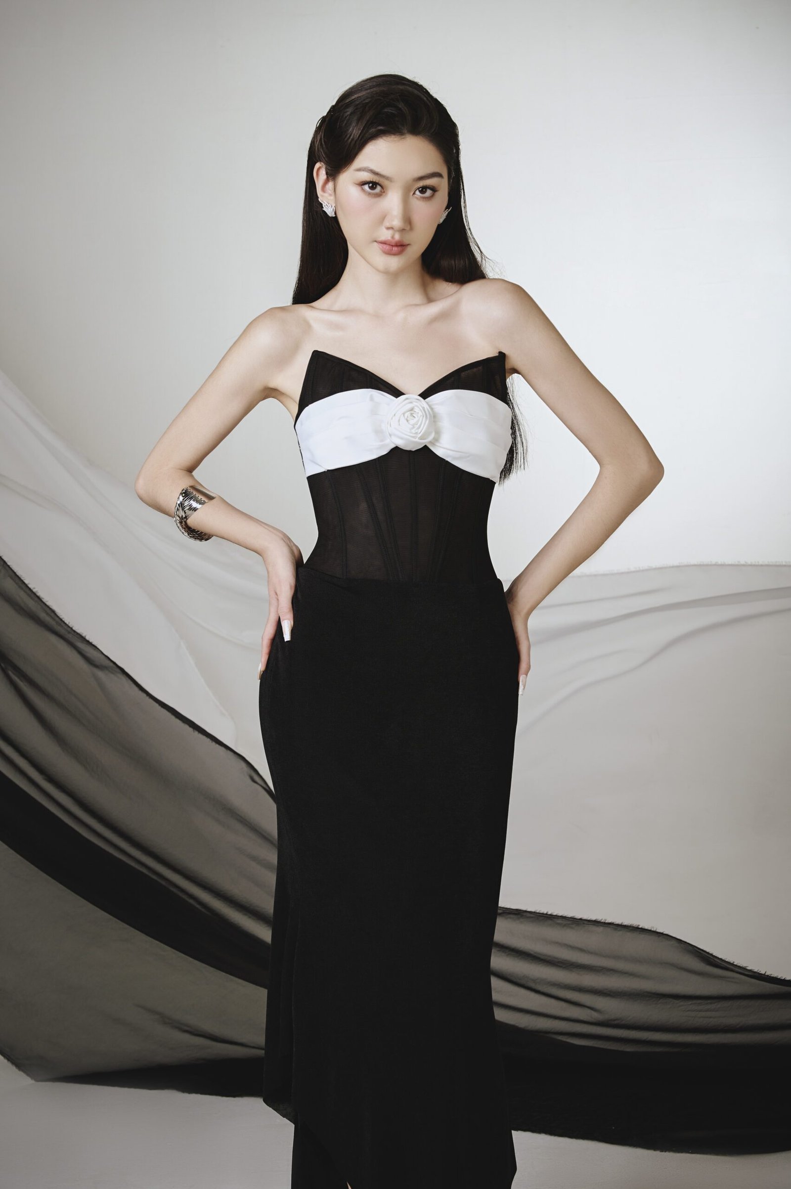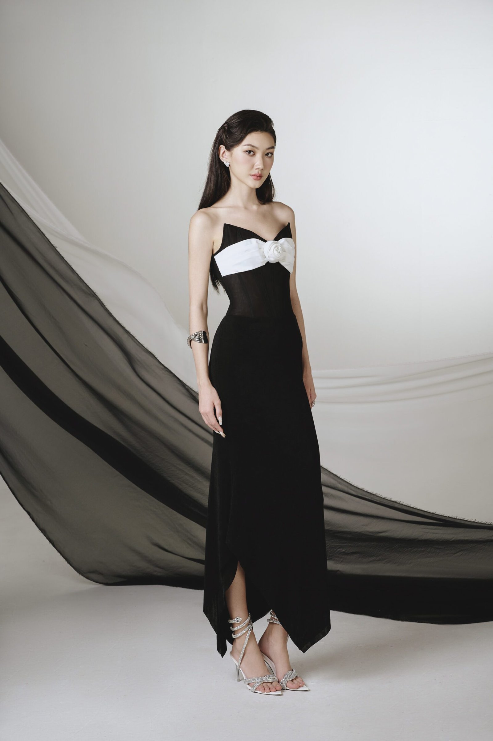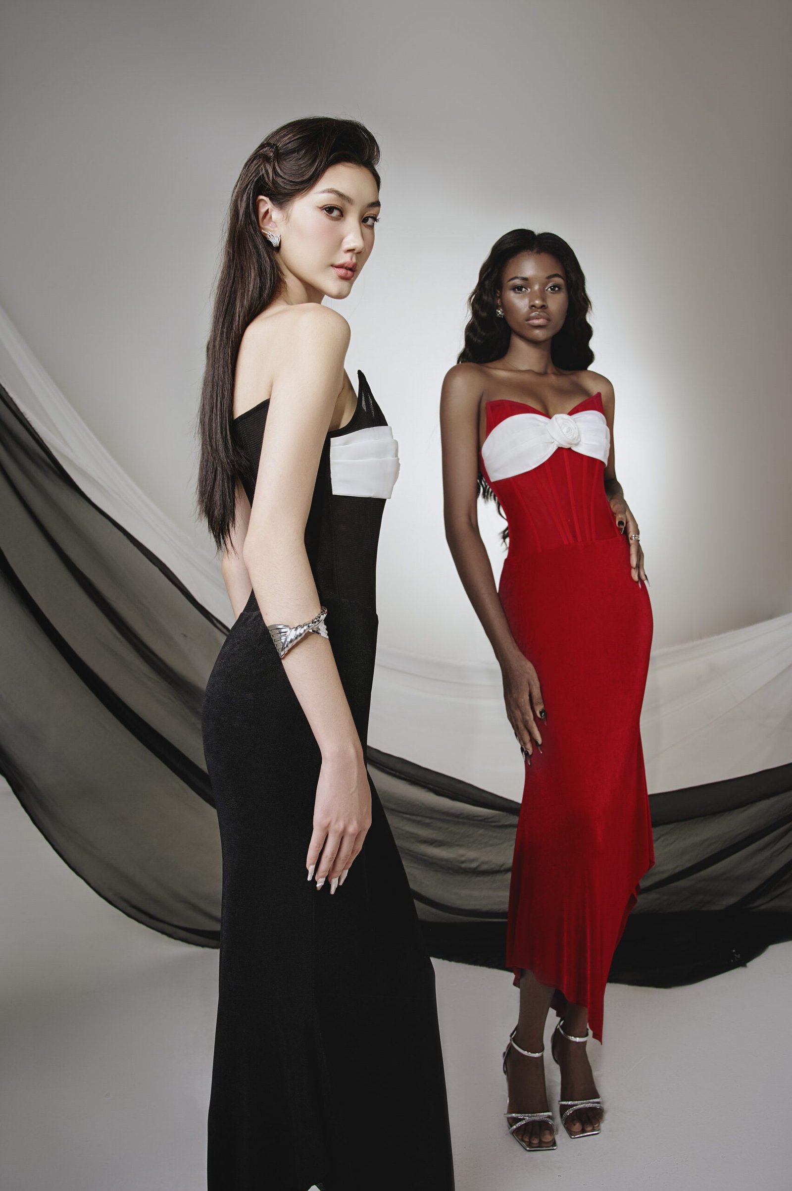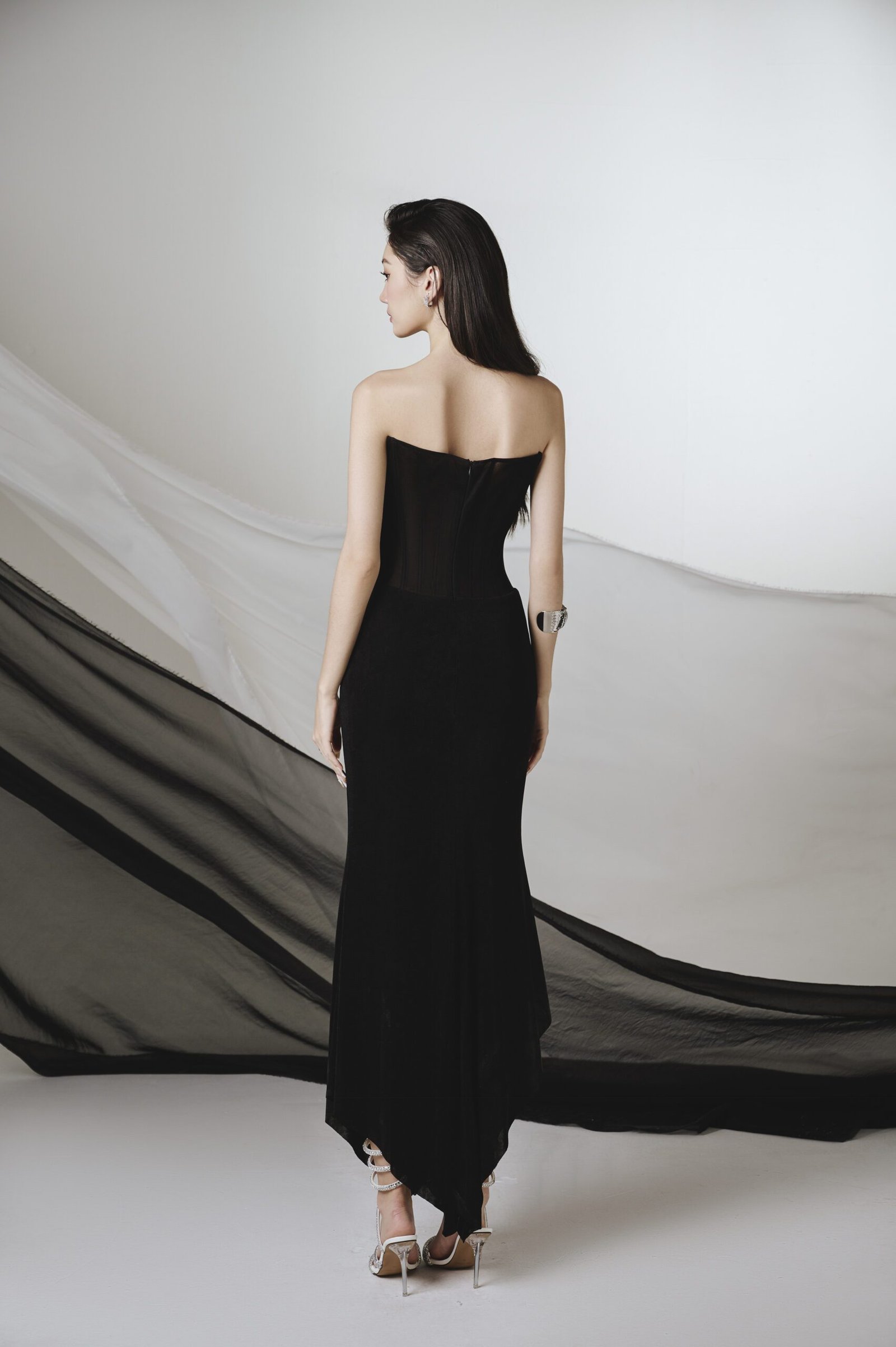 The Hana Dress embodies exceptional allure. It accentuates the figure with its sweetheart neckline and corset form. Available in two color versions: red and black. The dress combines multiple materials: Soft Mesh, Taffeta, Spandex, and Silk Lining.