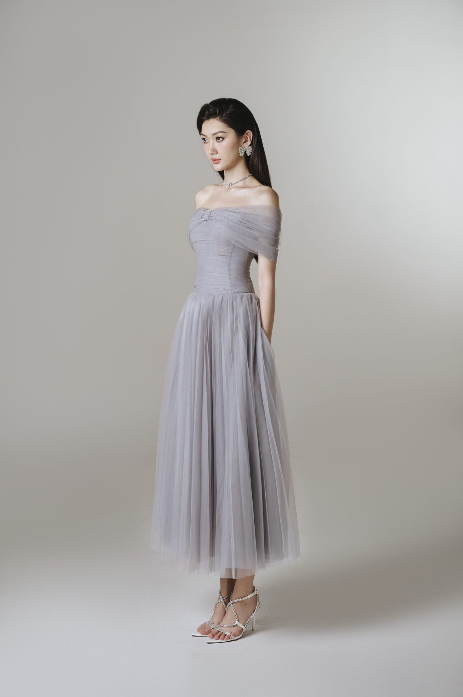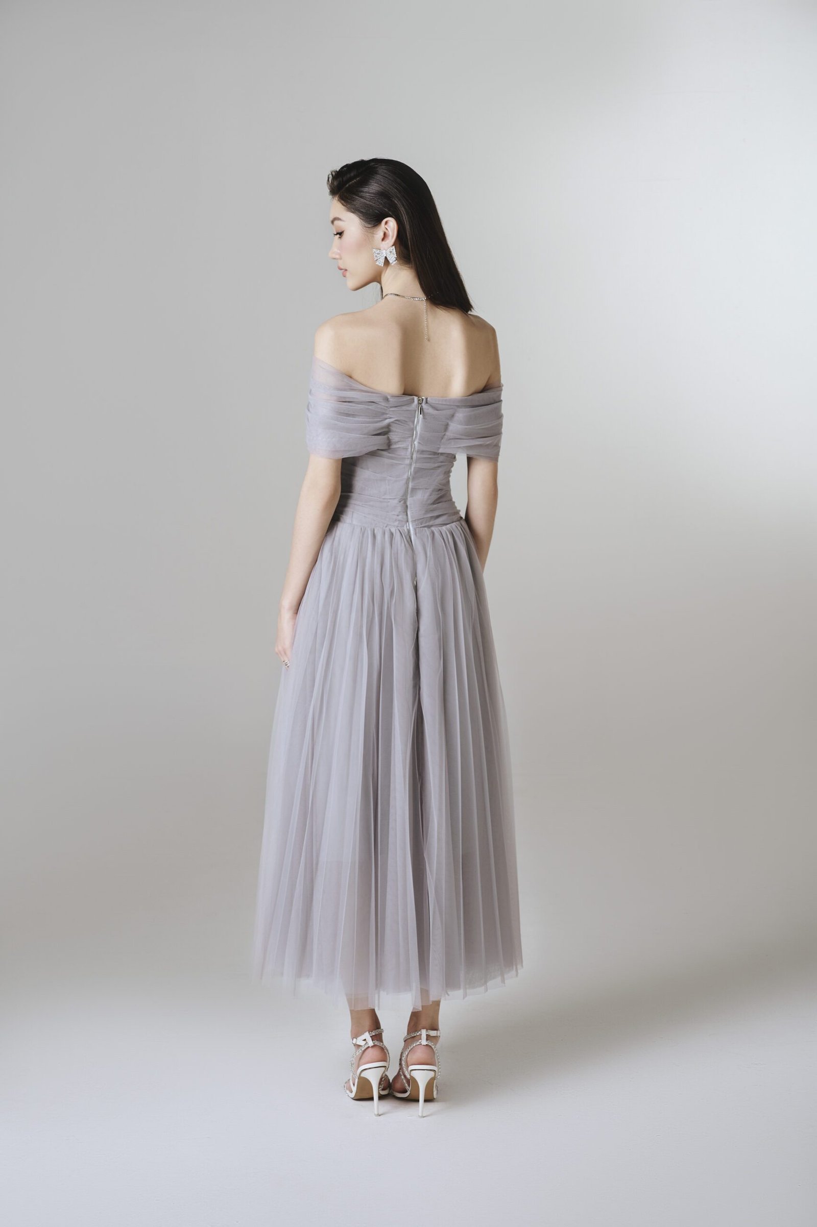 The Ori Dress is the ideal choice for those who appreciate simplicity in color. It exclusively features the sophisticated shade of gray. The dress has a perfectly tailored long silhouette with a cinched waist for a refined fit. Crafted from soft mesh and silk lining, it offers both elegance and comfort.