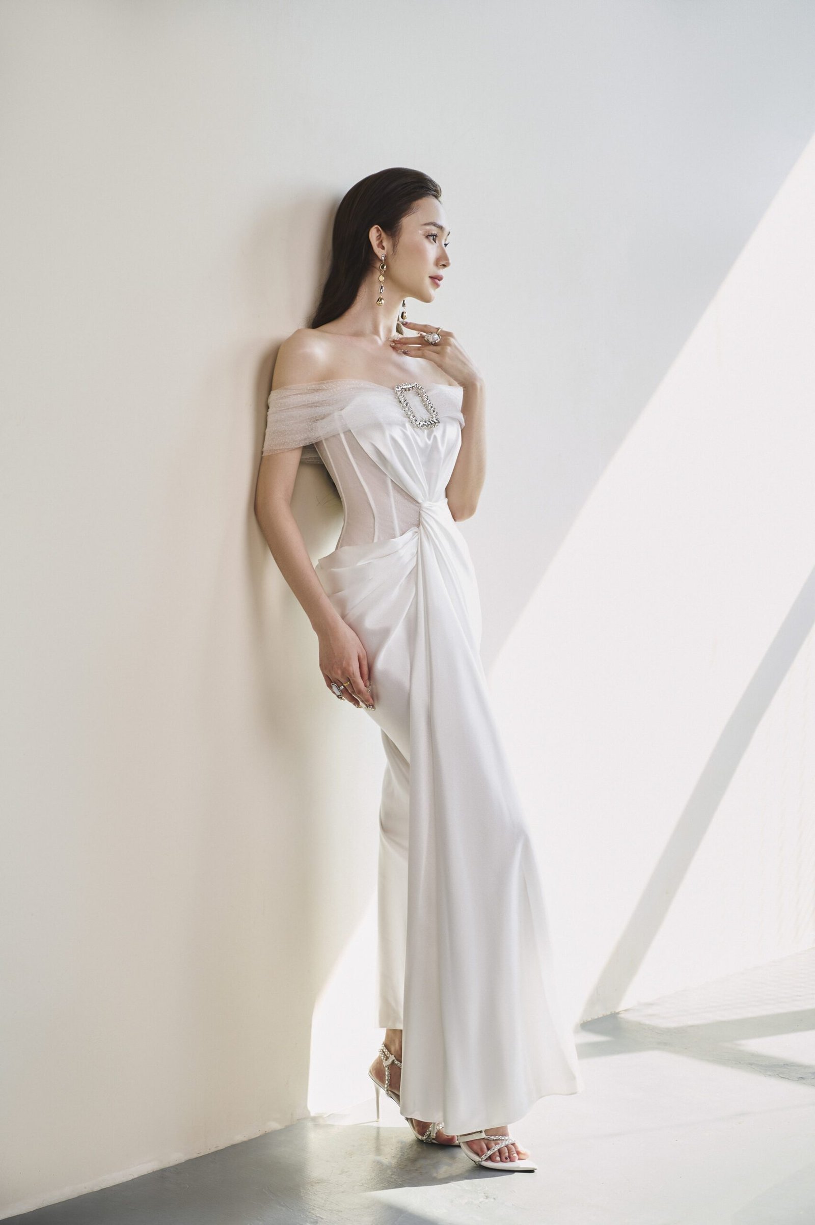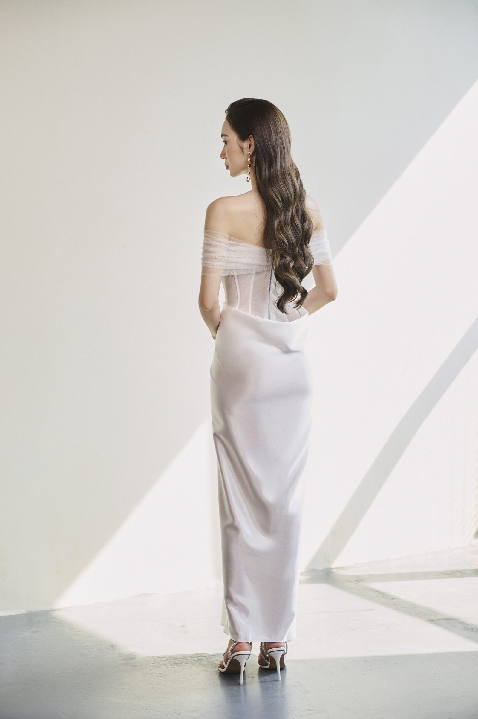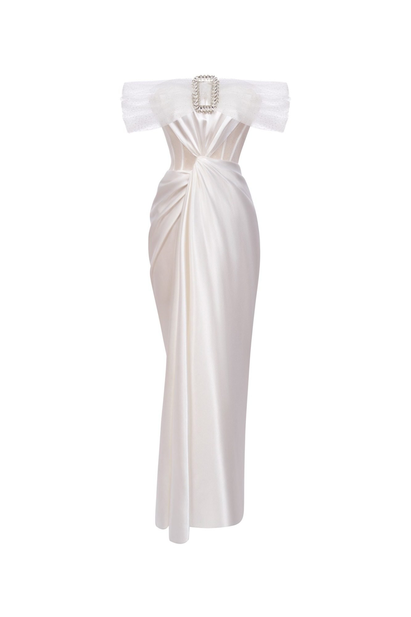 The Sophia Dress embodies elegance and high-class allure. With its off-shoulder design, unique waist twist, and corset form, this dress accentuates the wearer’s silhouette beautifully. The pure white enhances the dress’s sophisticated charm. Crafted from Silk, soft mesh, and silk lining, it offers both comfort and luxury.